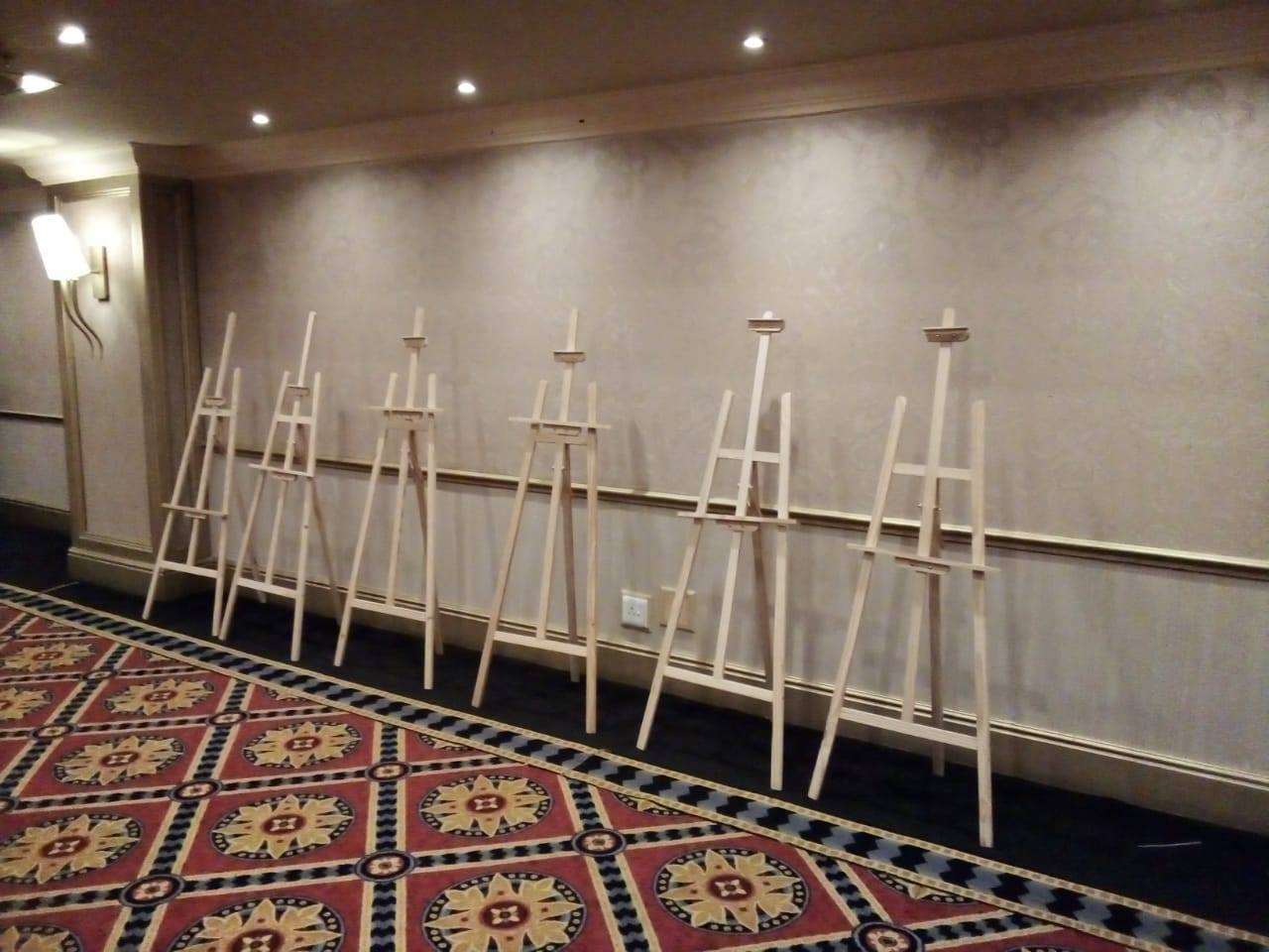 In addition to the hiring of easels, we also assist with setting up the easels during the planning stages of your events at a fee. Our logistics team can assist with installing your painting on the easels, placing them at an ideal location to ensure that you do not have to do all the work. Below are some of the display formats.